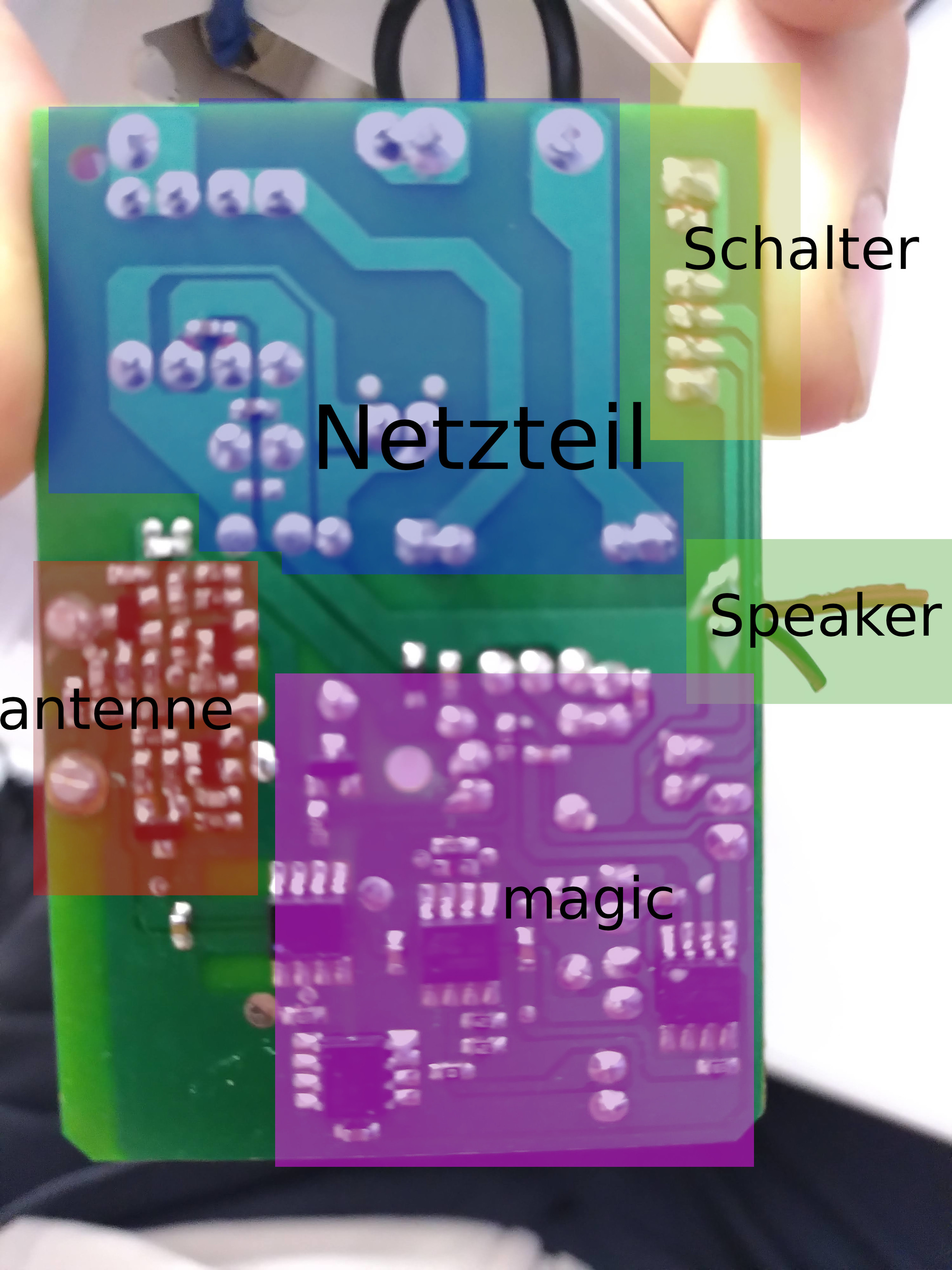 Nun ist der Sender dazu verloren gegangen. Um das ganze doch noch verwenden zu können, könnte man die Schaltung in der klingel so umbauen das sie klingelt solange sie Strom bekommt. man kann dann so eine smarte Steckdose da vor schalten.