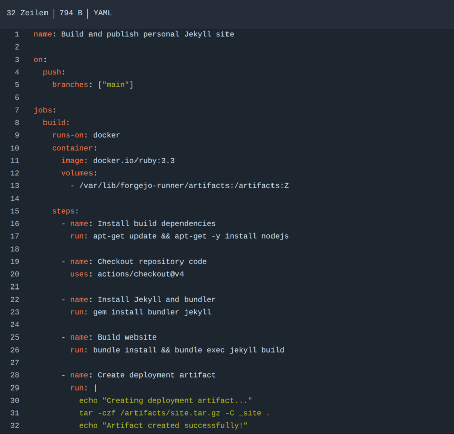 The Forgejo Runner and the Nginx Webserver run in different unprivileged user contexts.