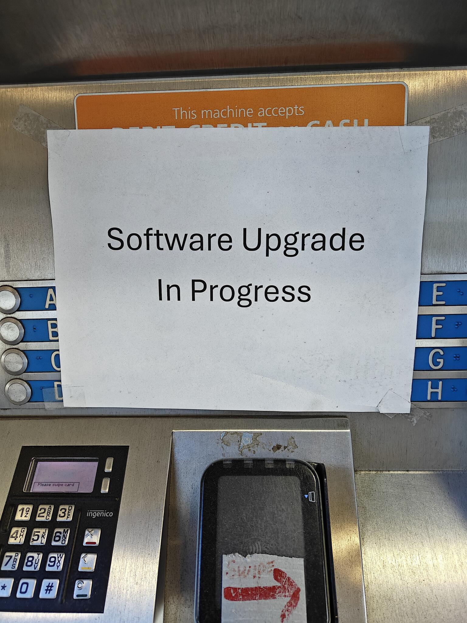 Stand clear! Bay Area Rapid Transit system kiosk software is being upgraded, perhaps via postal mail.