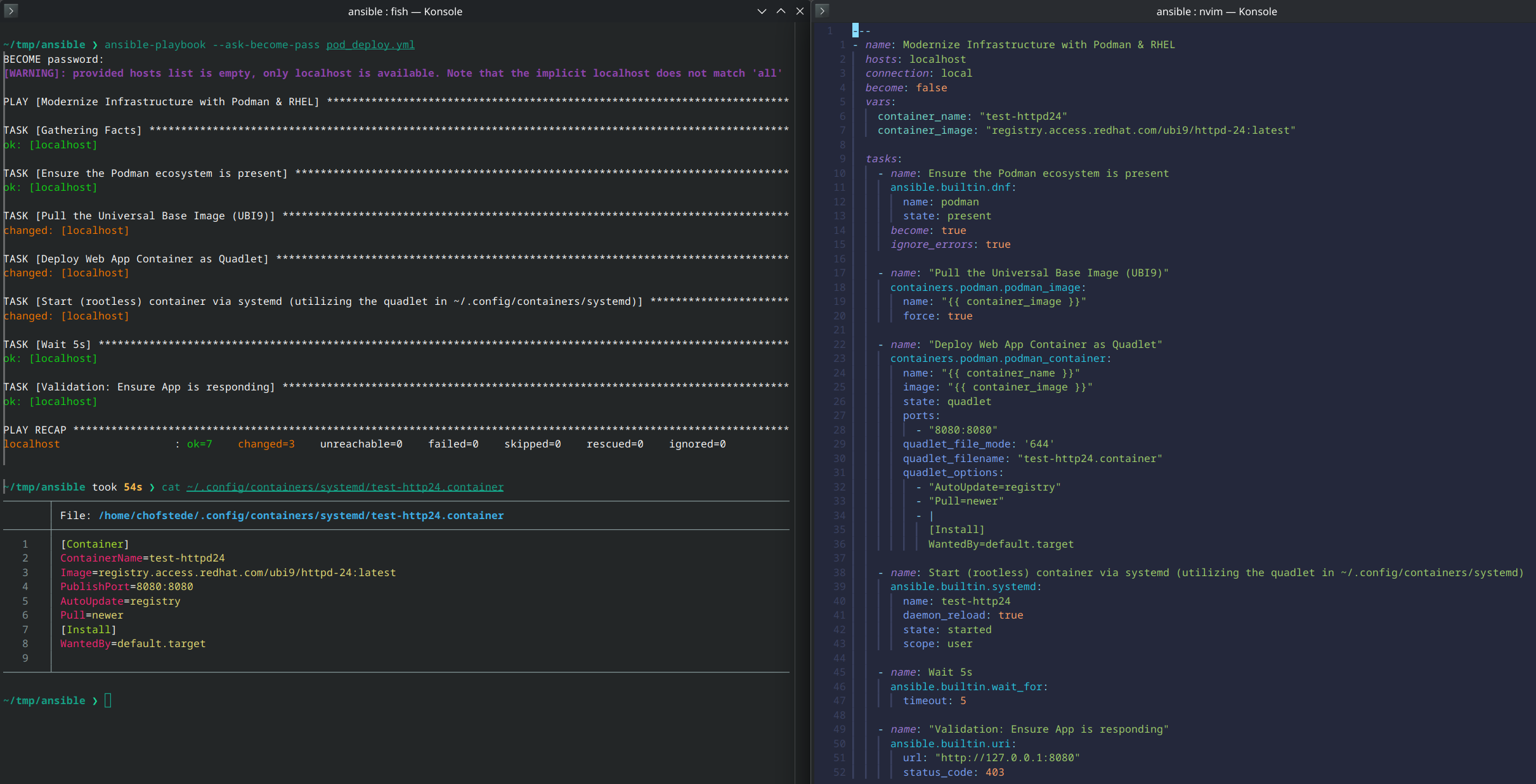 Compose is great for dev, but Quadlets are native to systemd. This means dependencies (like network or mounts) are handled by the OS init system, not a separate daemon. It’s just much more robust for single-node production.