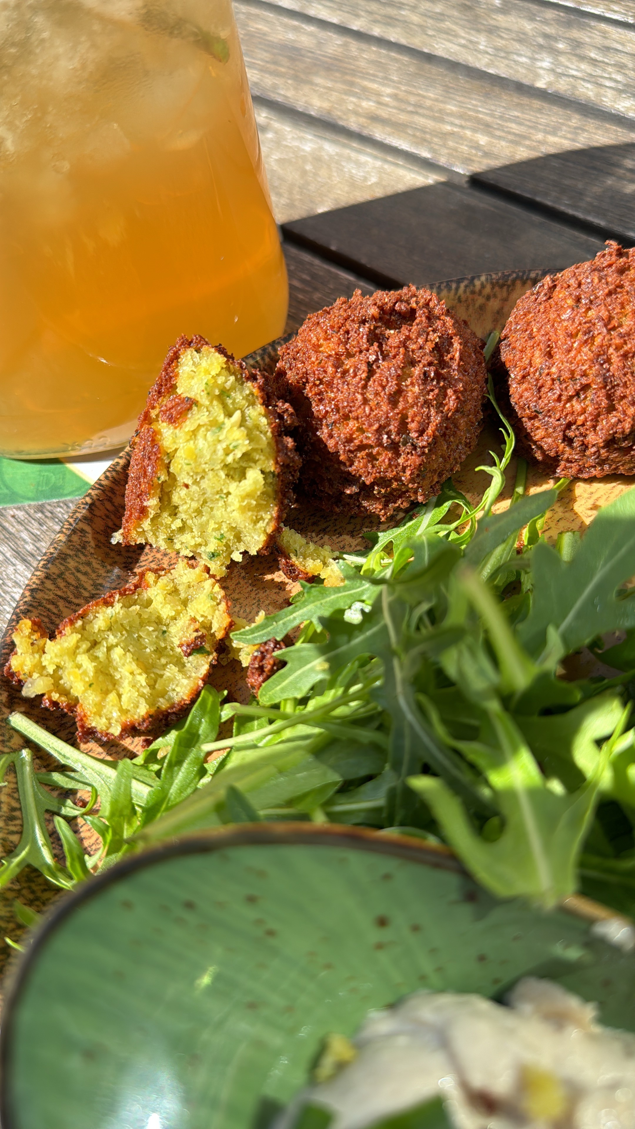 In der Sonne sitzen und frische hausgemachte #falafel mit #tahini dip und einen #earlgrey Eistee genießen 😌 #food #vegan