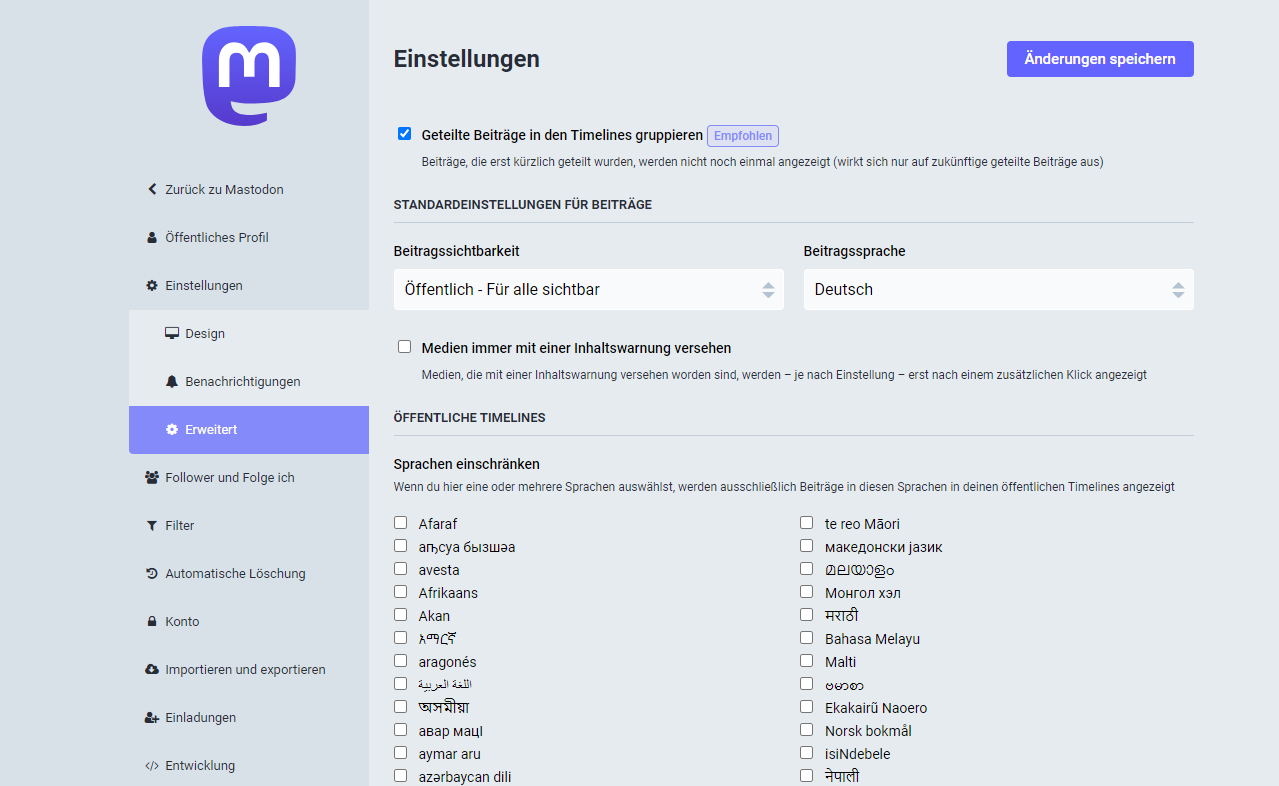 Ist eigentlich allen bekannt, dass eine Filterung der öffentlichen Timeline nach Sprachen möglich ist?
