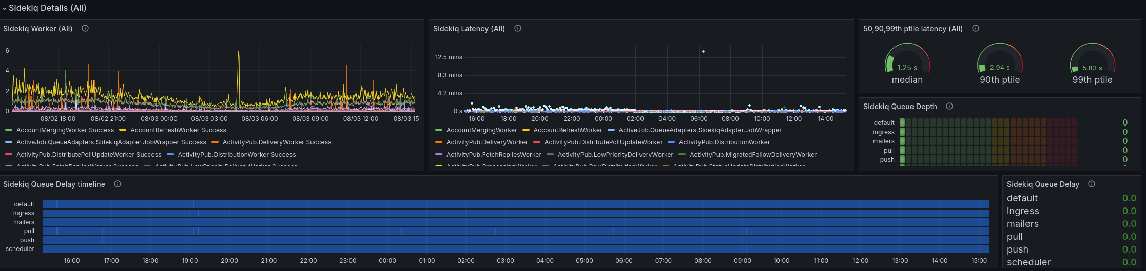 Sidekiq latency and queues are looking very good.