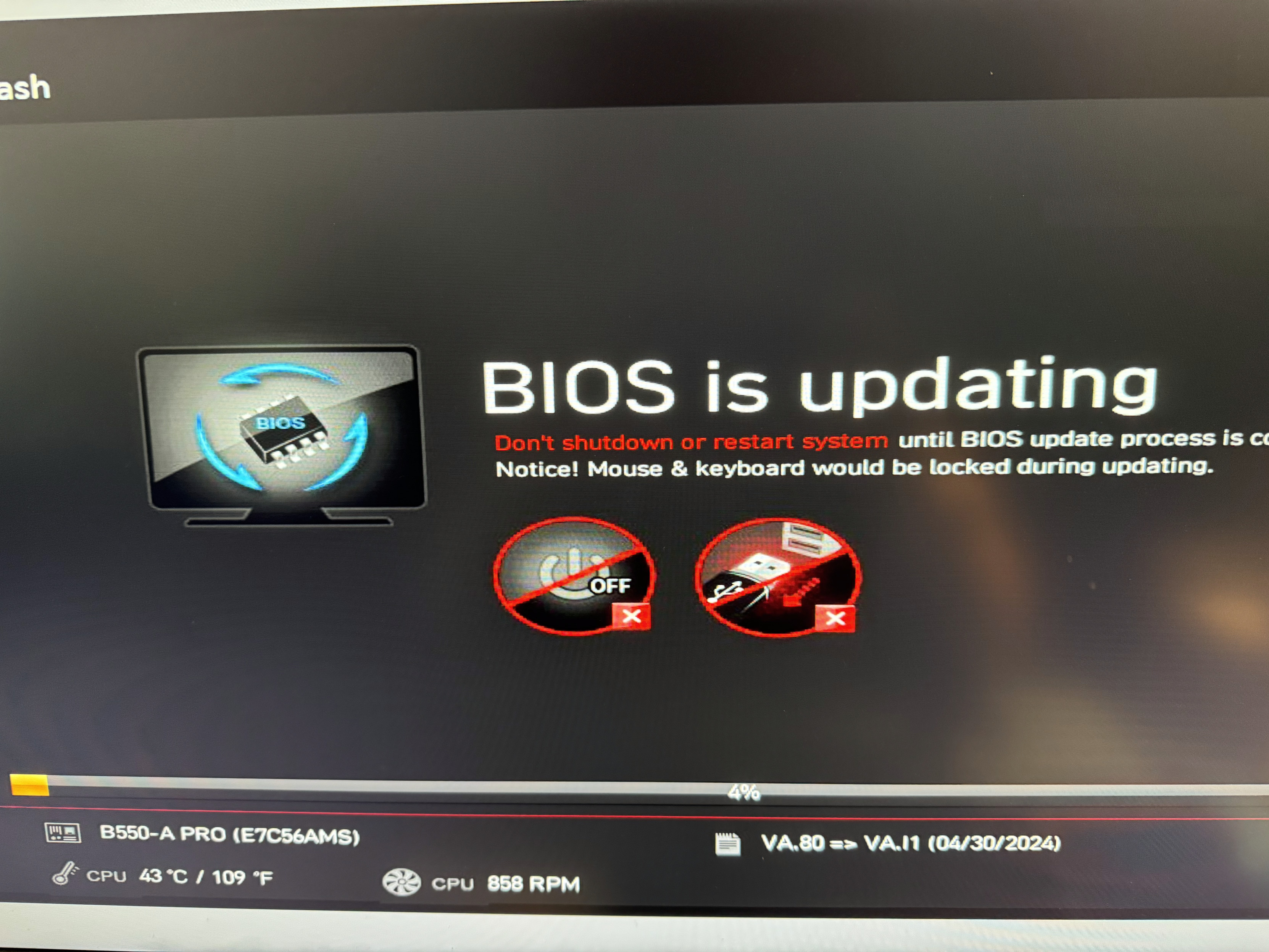 bios update auf usb enpackt, vom usb gebootet, script startet.