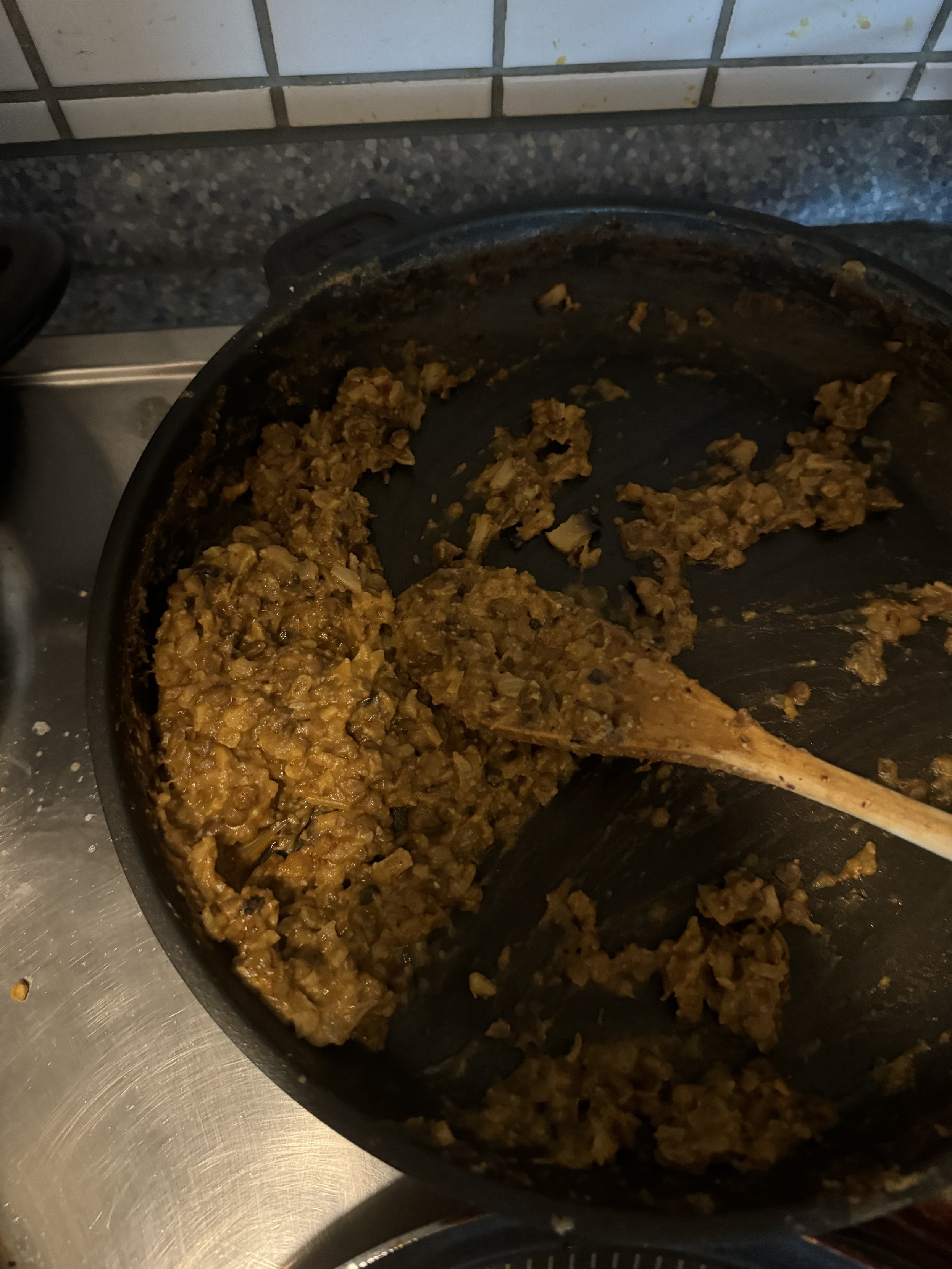 Gefüllte Platschinken mit selbst gemachtem „Hack“ in #vegan aus Linsen, Zwiebeln, Knoblauch, Champignons, Tomatenmark, Gemüsefonds, gehackten Mandeln und Gewürzen (Chili, Kreuzkümmel, Räucherpaprika und Salz)